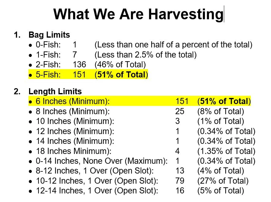 And while admittedly not the threat that live fish as bait is, and not something we tried to change at the time, angler exploitation was and still is a problem, and at the root of many harmful stocking programs. The following numbers were pulled from my testimony, they were presented to provide a baseline for how our never-stocked brook trout lakes and ponds were being managed: