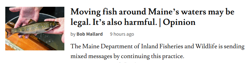 “While bucket biology is a huge problem, the Maine Department of Inland Fisheries and Wildlife moves non-native fish around regularly and has for generations...”