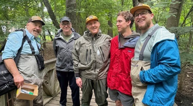 Left to Right: Massachusetts NFC board members Jeff Moore, Dominic Brown, Paul Roell (Chair), Ben Heinze (Secretary), and Shane Johnson (Vice Chair) at Cold Spring Brook in Cold Spring Park…