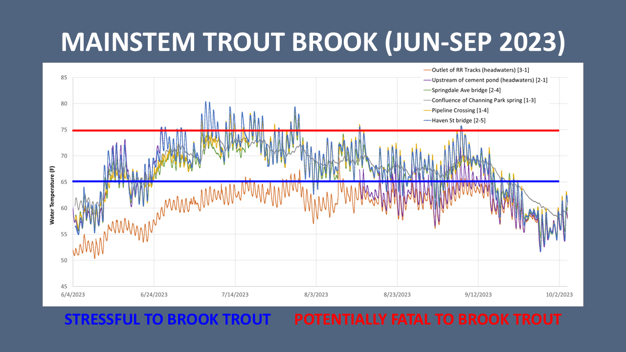 Collecting meaningful and complete datasets in regard to water temperature is not as easy as it sounds. In addition to monitoring temps for an entire season (spring through fall), it is critical that data loggers be deployed in a way that thermal stressors and thermal refuge can be identified and easily located. Failure to do so can result in incomplete datasets, misleading data, incorrect assumptions and recommendations, or worse, the need to do it again.